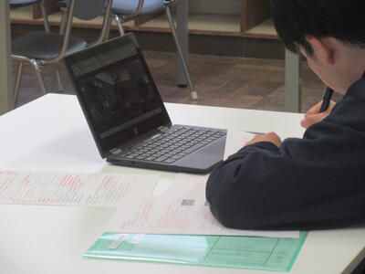 今年は,体育館の床工事に伴い,教室などを活用してオンラインで行いました。ご不便をおかけしましたが,新入生の入学を心よりお待ちしております。