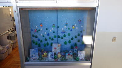 図書ボランティアの皆様が,掲示物を変えていただいています。もうすぐ冬ですね。