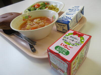 本日の給食はおでんです。ニンジンの形をした具材もあり,楽しい給食となりました。