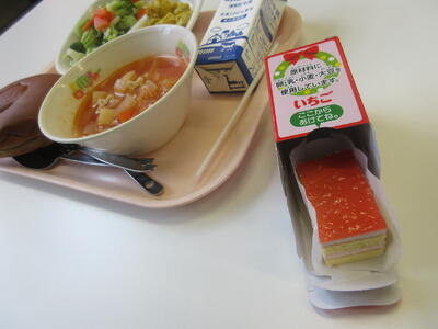 昨年度に続き,「魅力ある学校づくり地域協議会」様より,昨今の物価高への対応ということで,全生徒分のケーキ(3種)をご提供いただきました。放送で栄養教諭からその旨説明しました。誠にありがとうございました