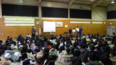 今年は,体育館の床工事に伴い,教室などを活用してオンラインで行いました。ご不便をおかけしましたが,新入生の入学を心よりお待ちしております。
