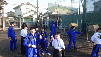 弓道女子団体Aチーム(粂川,梶田,山本組)決勝トーナメント進出(ベスト8)おめでとうございますさらなる飛躍を期待しています!