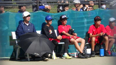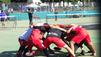 がんばるぞー!力強い円陣で団体戦を2回戦まで戦いました。個人戦(吉澤,中村組)がベスト8進出でした。さらなる飛躍を期待しています!
