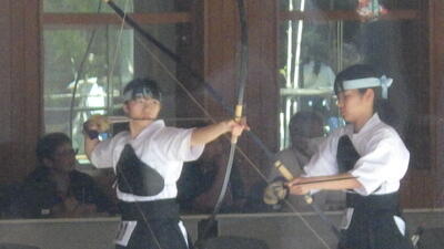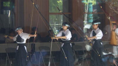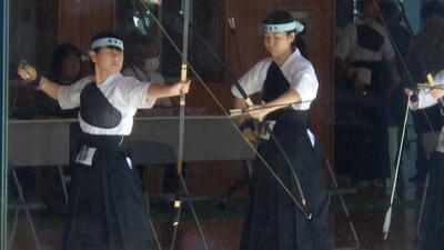 弓道女子団体Aチーム(粂川,梶田,山本組)決勝トーナメント進出(ベスト8)おめでとうございますさらなる飛躍を期待しています!
