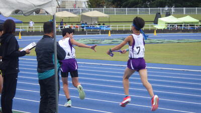 晴天の中,県総合第2競技場において行われました。1本の襷を最後までつなぎ,男子が優勝,女子が7位と大健闘でした!