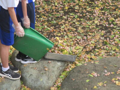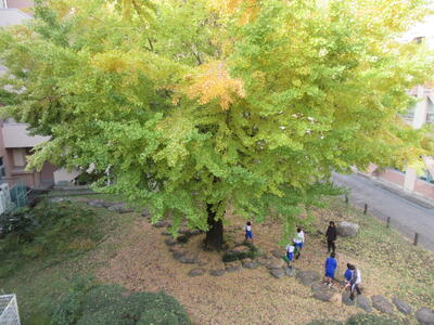 本校の中庭のイチョウが色づきました。今年も,特別支援学級の生徒たちが,先生たちと大変な作業の中,銀杏を加工します。