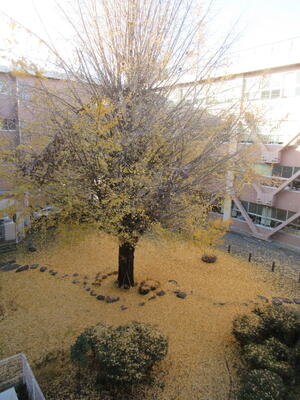 創立当時,校舎を船,中庭のイチョウを帆に見立てたとされています。つまり,学校は,生徒の夢や希望の乗せて運ぶ大きな船です。その大イチョウも落葉し,冬ごもりです