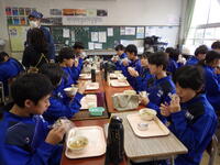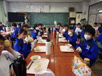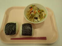 食事への関心を高めるため,おにぎりの日を設定しました。自作のおにぎりが並ぶ,楽しい給食となりました。