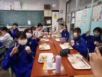 1年佐藤 葵さんの「きのこたっぷり揚げないヘルシー春巻き~えのきのすき焼きソース添え~」が最優秀賞(知事賞),1年守山 埜乃さんの「色々きのこのガレット」が優良賞(特用林産協会長賞)を受賞しましたアイディアあふれる作品が評価されました,おめでとうございます!きのこコンクールについて
