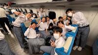 火災に限らず,常に自然災害はあります。放送をもとに,教室の机に隠れる訓練をしました。