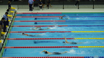 水泳競技から始まり,男子では総合準優勝というすばらしい結果でした。200mバタフライ(吉田吴翔さん)他,4×100mメドレーリレーで2位となるなどすばらしい泳ぎでした。