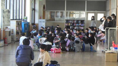 もらった6年生は大事そうにメッセージカードやメダルを眺め,お礼の言葉を話していました。