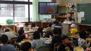 給食の時間には,図書委員による絵本「ひ・る・ご・は・ん」の読み聞かせテレビ放送がありました。