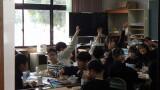 教室をのぞいてみると,みんながちょうどおかわりで並んでいるところ。