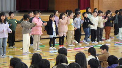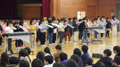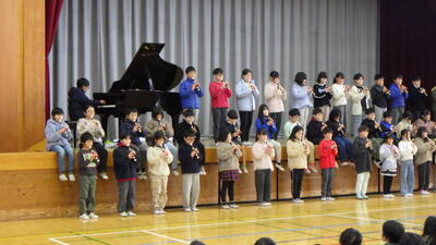 1年生は手話付きで元気よく「さんぽ」を歌い,「きらきら星」の合奏も披露しました。