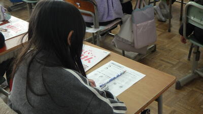 授業が終わってからも友達とプリントを見せ合って話している児童も見られました。