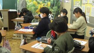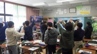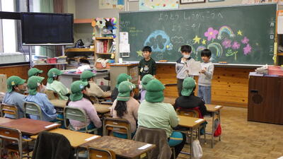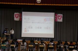 最初は6年生にまつわるクイズです。みんな一生懸命に考え,答えが合っていると大喜びでした。