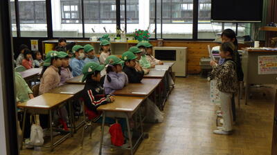 認定こども園さくらが丘の年長組の皆さんが,陽東小学校を訪れたのです!