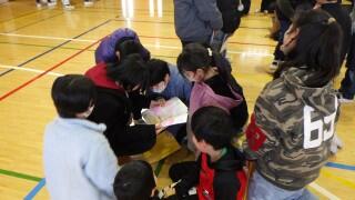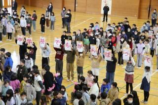 もらった6年生は大事そうにメッセージカードやメダルを眺め,お礼の言葉を話していました。