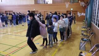 次はじゃんけん列車です。6年生を先頭にとても長い列ができました。