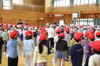 異動された先生方が,陽東小学校のみんなとお別れに来てくださいました。