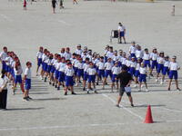 応援団は,広い校庭に慣れようと,一生懸命取り組んでいました。