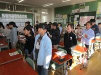 清原中の本校の卒業生1年生から3年生が,一緒にあいさつを行いました。