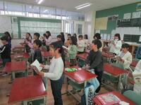 この集会では,6年生が人権に関する作文を代表で読んだり,