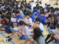 校庭や教室などあちこちから,歓声が聞こえていました。
