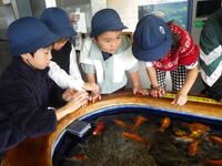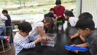 水遊園では水辺の生きものを見たり触ったり,多くの生きものに子どもたちは大喜びです。