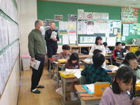 今日は,6年4組で県立博物館に勤務経験のある加藤副校長が講師となって,