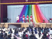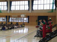 軽快なリズムとともに、演奏者が登場すると、体育館は熱気に包まれ子供たちの手拍子も自然と大きくなりました。