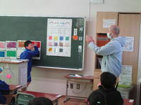 中に入ってみると,ALTが言う色を表す英語を聞いて,