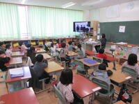 送る会では,各クラスごとに作った6年生へのメッセージ動画を観たり,